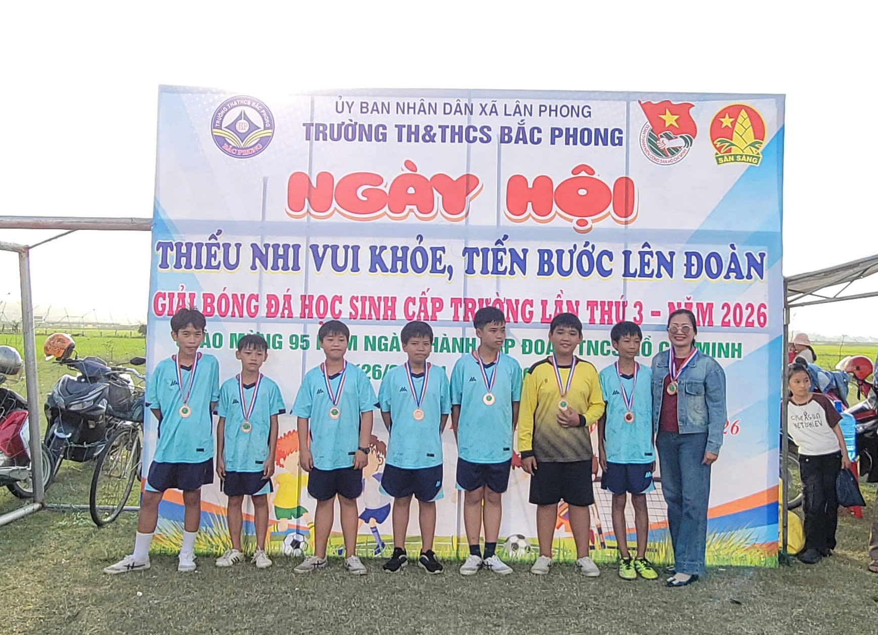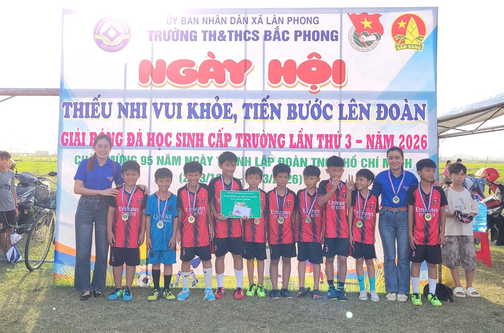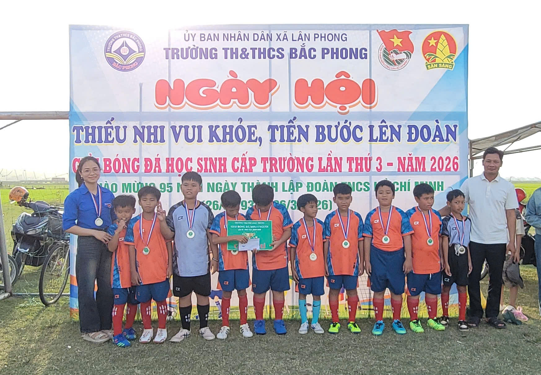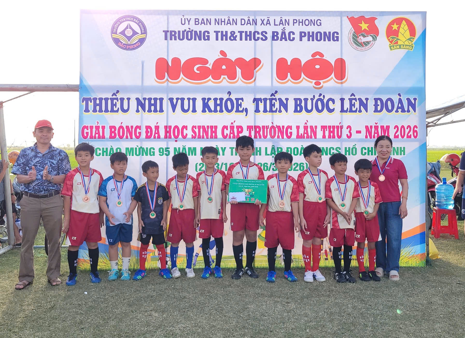 Trong khuôn khổ chương trình “Ngày hội Thiếu nhi vui khỏe – Tiến bước lên Đoàn”, Trường TH&THCS Bắc Phong đã tổ chức “Giải bóng đá học sinh cấp trường lần thứ 3 – năm 2026”. Đây là hoạt động ý nghĩa nhằm thi đua lập thành tích chào mừng kỷ niệm 95 năm Ngày thành lập Đoàn TNCS Hồ Chí Minh (26/03/1931 – 26/03/2026), đồng thời tạo sân chơi lành mạnh, bổ ích cho học sinh toàn trường.