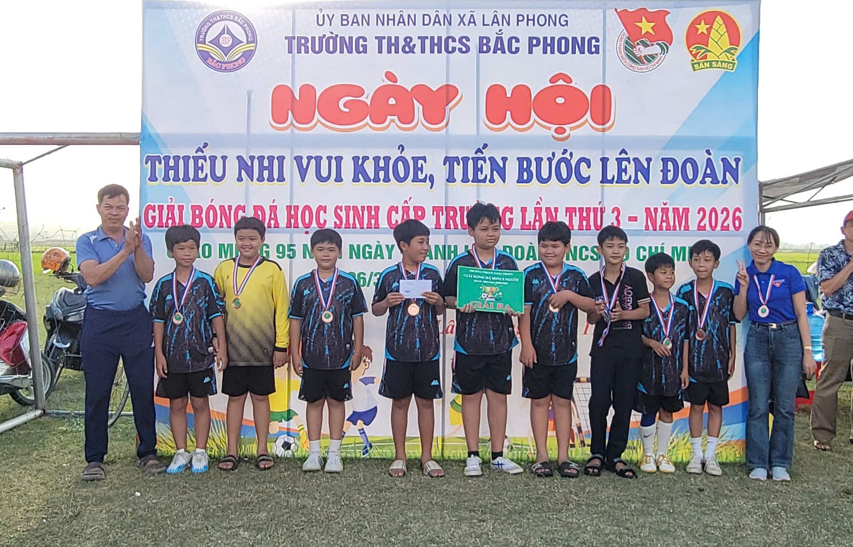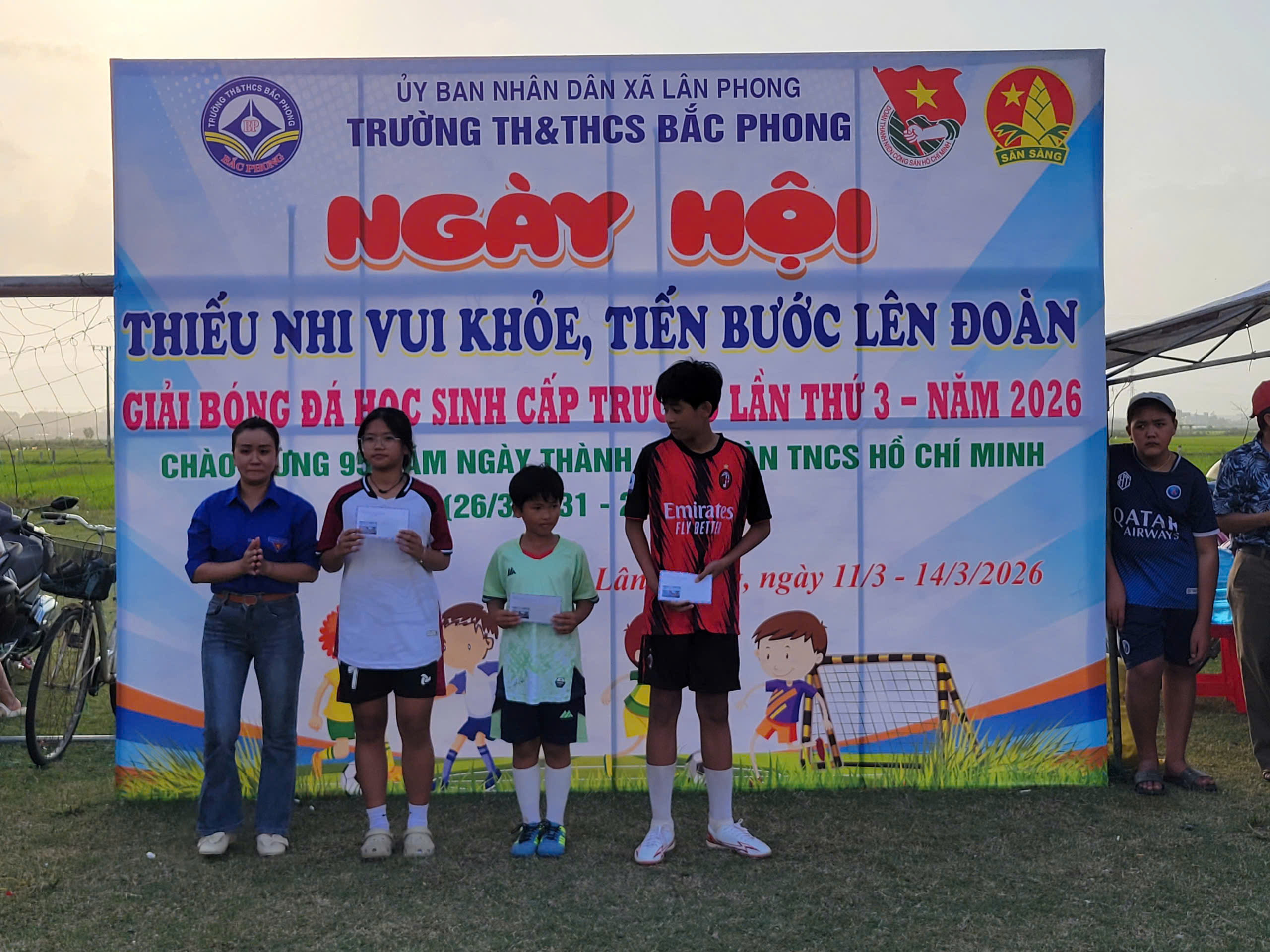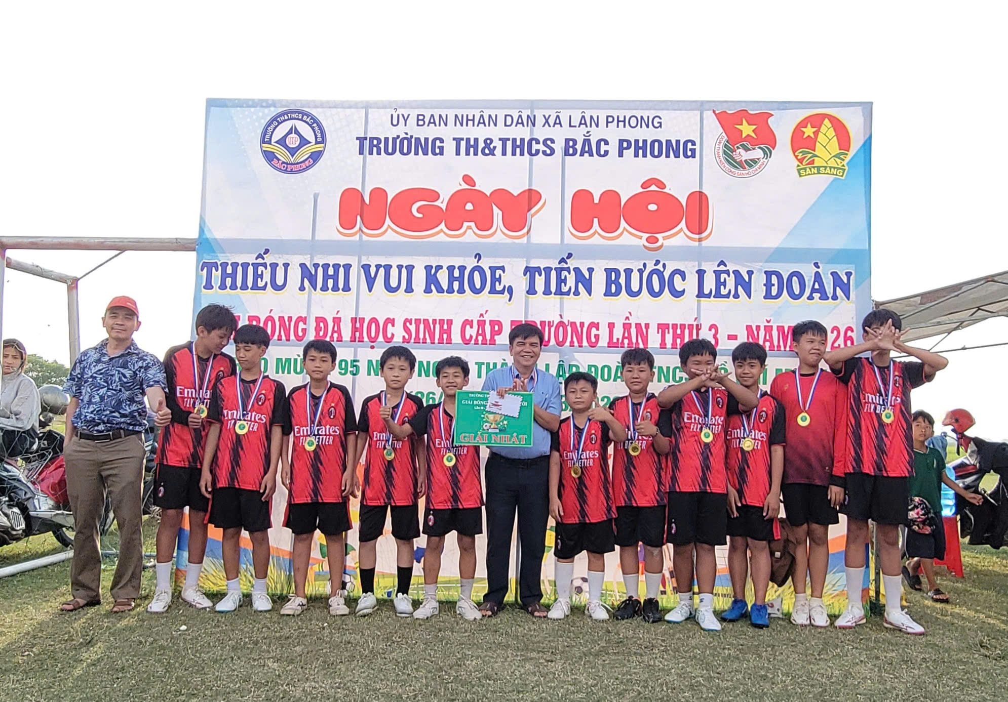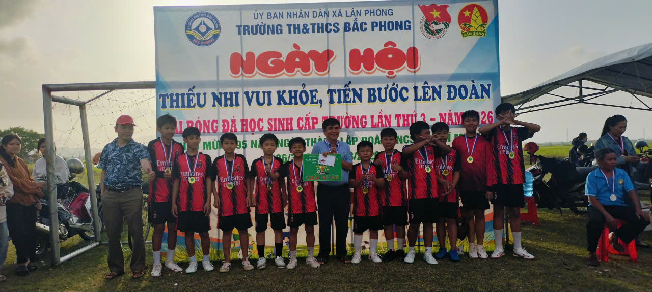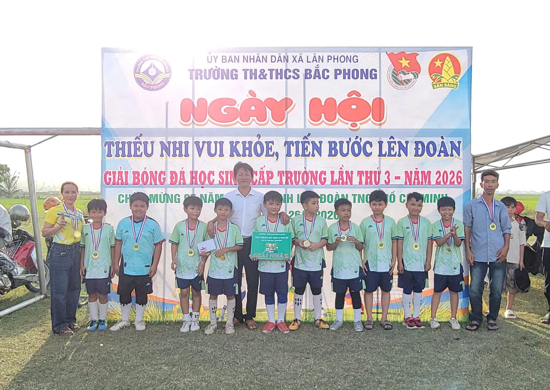 Trong khuôn khổ chương trình “Ngày hội Thiếu nhi vui khỏe – Tiến bước lên Đoàn”, Trường TH&THCS Bắc Phong đã tổ chức “Giải bóng đá học sinh cấp trường lần thứ 3 – năm 2026”. Đây là hoạt động ý nghĩa nhằm thi đua lập thành tích chào mừng kỷ niệm 95 năm Ngày thành lập Đoàn TNCS Hồ Chí Minh (26/03/1931 – 26/03/2026), đồng thời tạo sân chơi lành mạnh, bổ ích cho học sinh toàn trường.