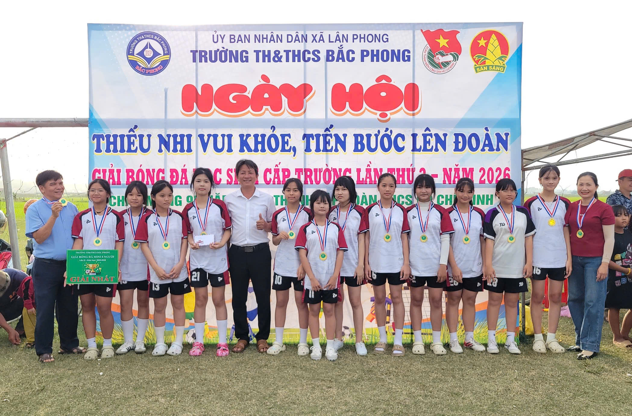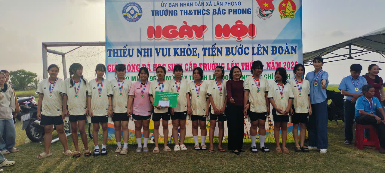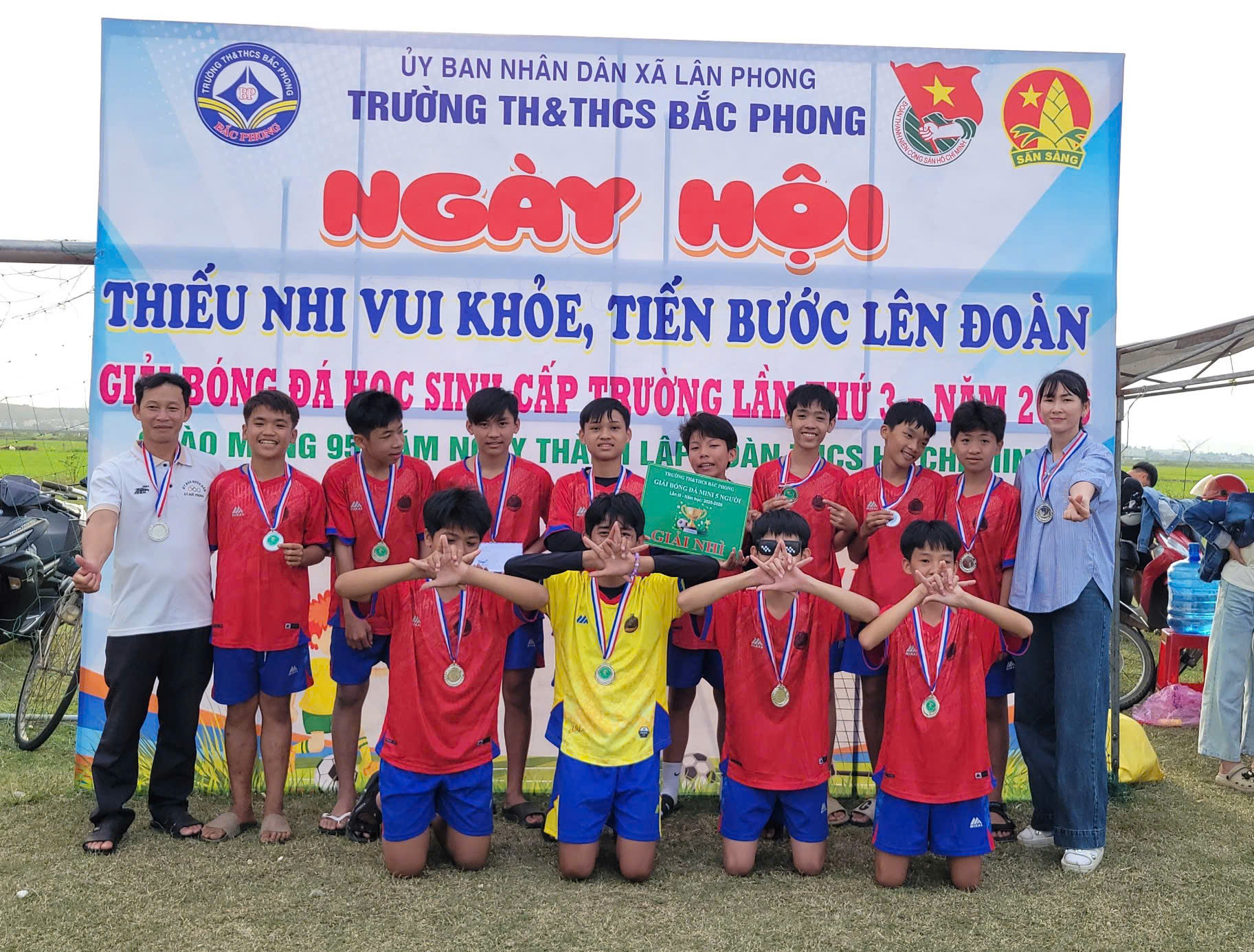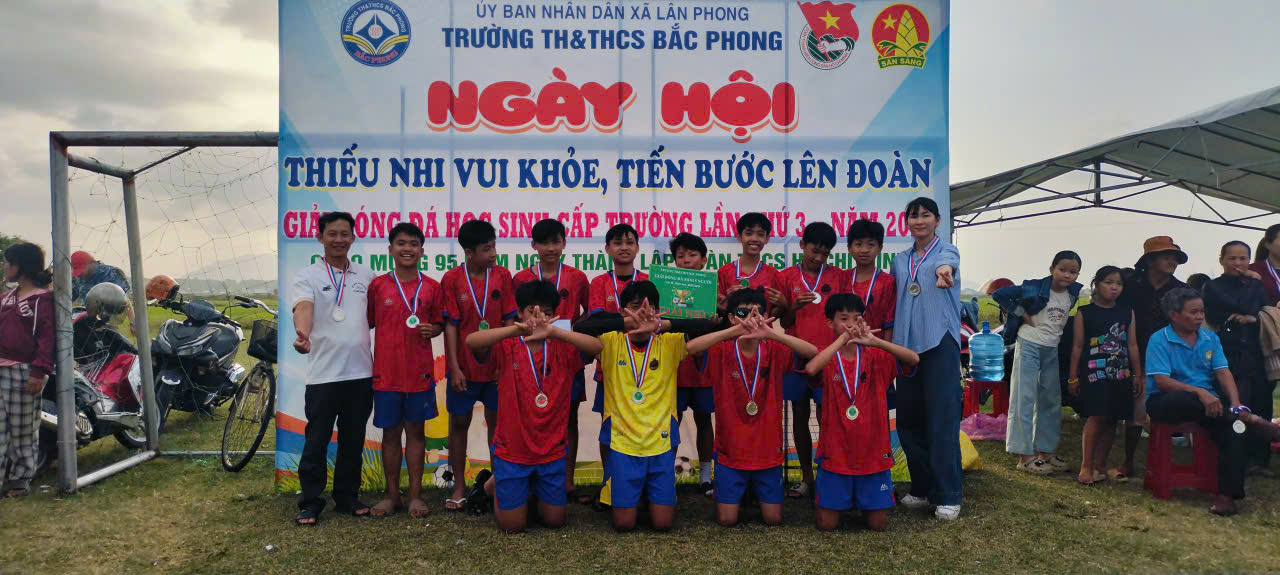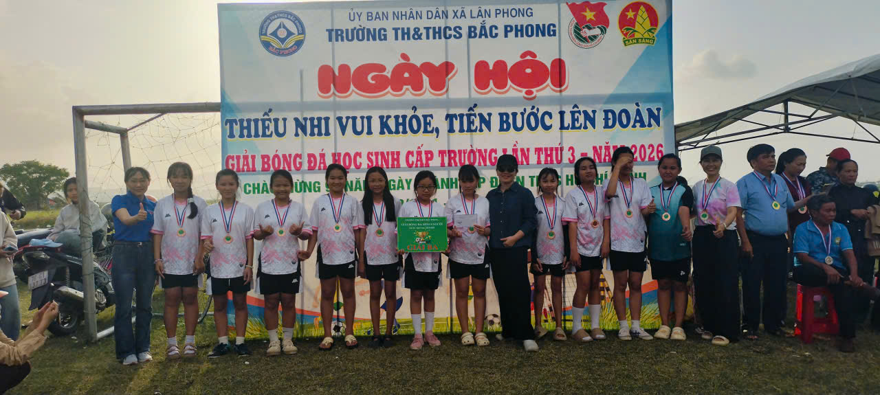 Trong khuôn khổ chương trình “Ngày hội Thiếu nhi vui khỏe – Tiến bước lên Đoàn”, Trường TH&THCS Bắc Phong đã tổ chức “Giải bóng đá học sinh cấp trường lần thứ 3 – năm 2026”. Đây là hoạt động ý nghĩa nhằm thi đua lập thành tích chào mừng kỷ niệm 95 năm Ngày thành lập Đoàn TNCS Hồ Chí Minh (26/03/1931 – 26/03/2026), đồng thời tạo sân chơi lành mạnh, bổ ích cho học sinh toàn trường.
